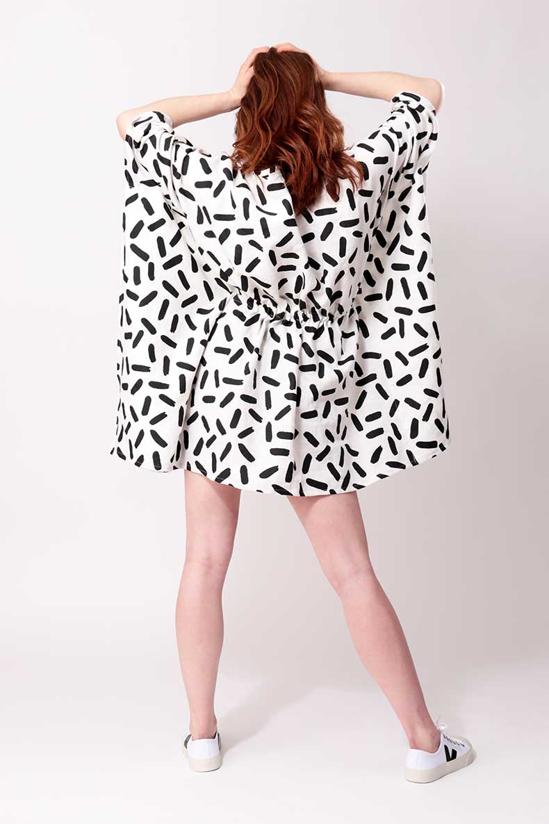 All pieces are made in-house in our studiostore in Malm Sweden. Garments made using zero waste pattern cutting from natural and re-purposed fabrics. The envelope dress is beautifully simple and a great way to dip your toe into sewing with this style of pattern.